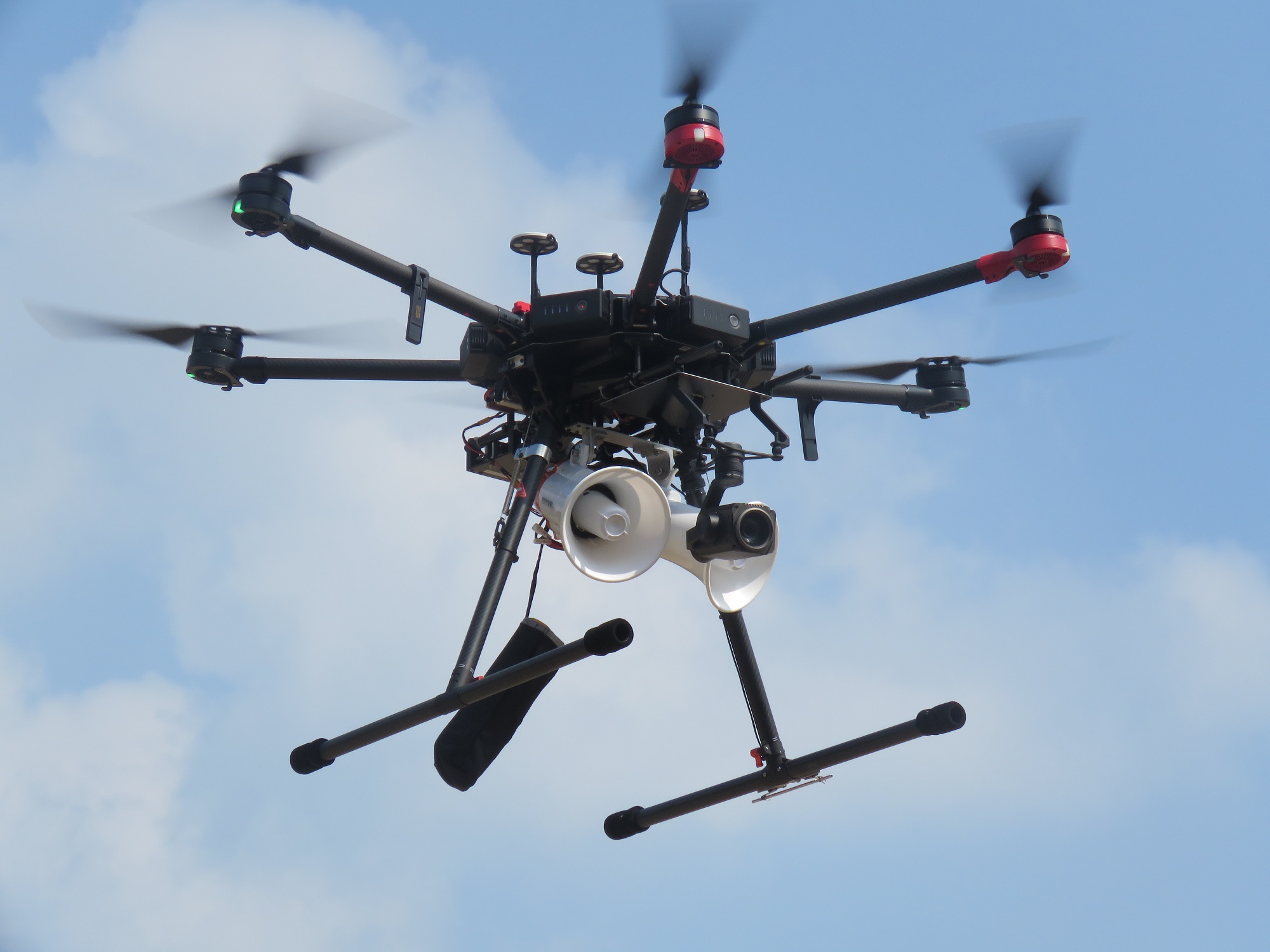 T&Tの中田氏は本実証実験のドローン開発について「念頭に置いたのは、広い範囲でドローンからの音が聞こえること。その工夫には苦労しました。訓練の場ではサイレン音が大きい等の環境条件もあり、ドローンから距離が遠い人には音が聞こえ辛い。今回の実証実験では半径200mくらい音量が届くスピーカードローンで、広くアナウンスすることを目指しました」と語ってくれた。
