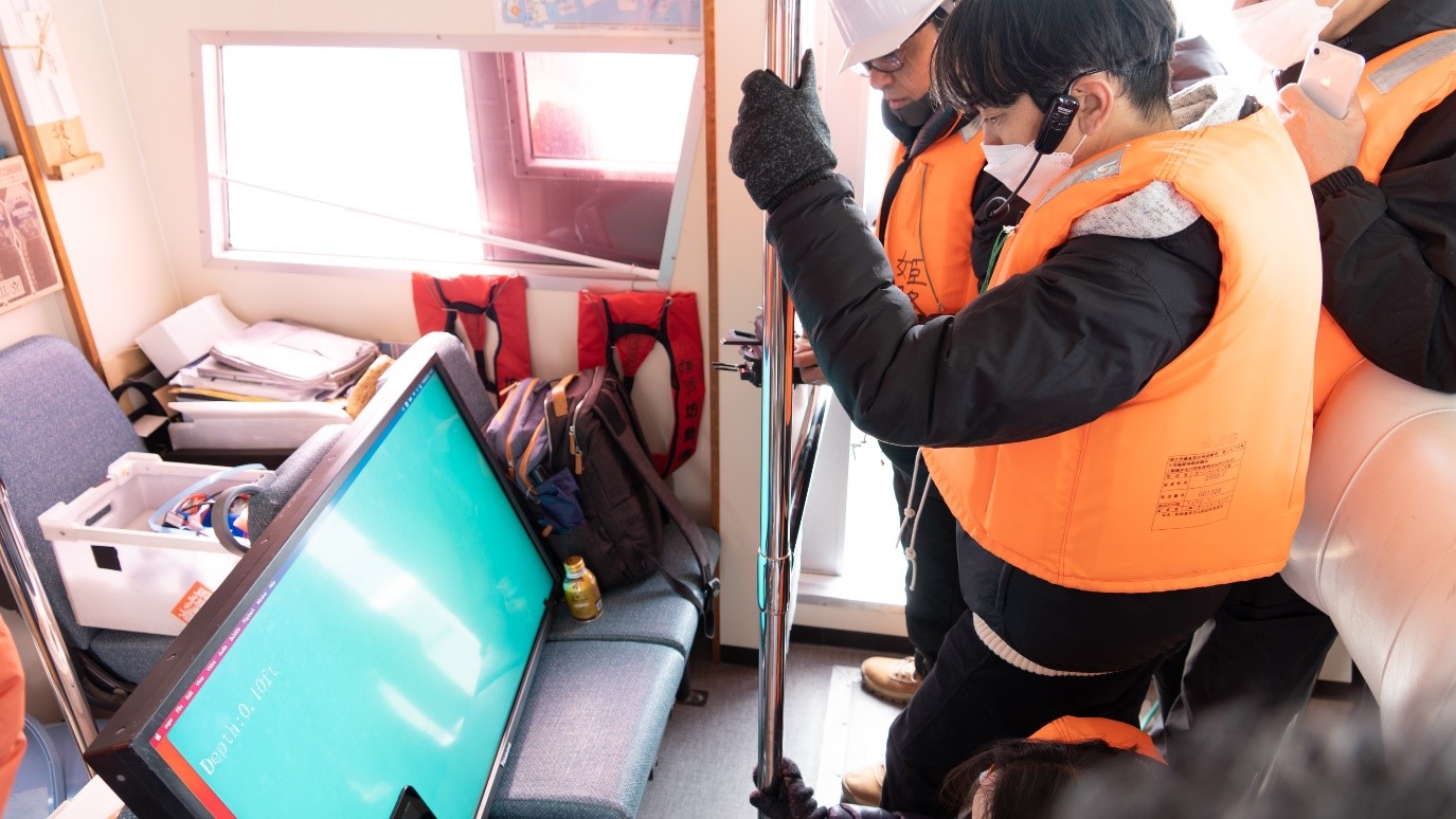 土居本:船の上ですと、現場で起こっていることの情報共有が非常に難しく、皆様からご指摘を頂いて、都度改善を試みました。松木のインカムが船のスピーカーから直接出るように坊勢漁協様にご用意頂くことができて、松木の依頼や指示がすぐに船全体に伝わるように出来たということがありました。