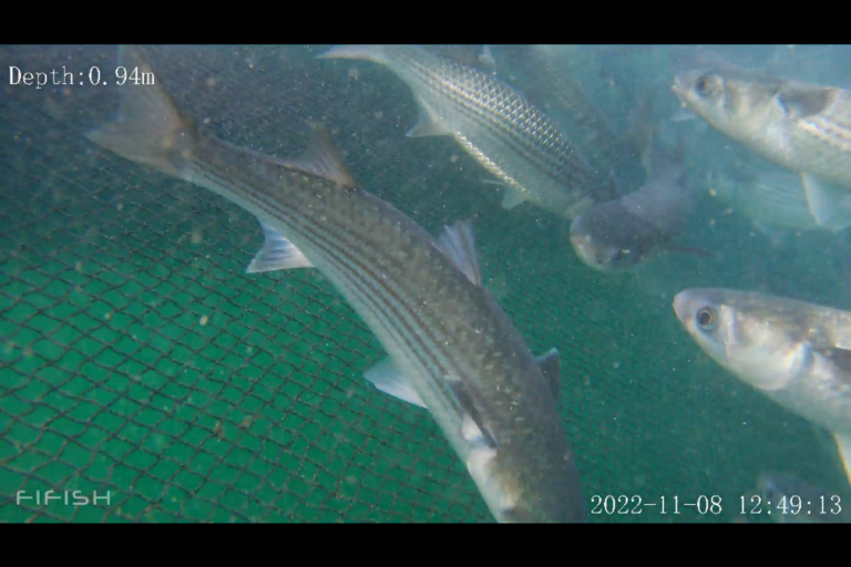 定置網については、海面から確認出来ない深さに網があるため、毎日船を出して部分的に引き上げ、魚が入っているか確認しているそうです。網の様子を遠隔で確認出来るようになれば、船を出すという手間やコストの軽減になります。撮影映像を見た漁師の方からは、「魚がかかっているタイミングを捉えて引き上げることが出来るのは、漁獲量という点でもいいね」とコメントを頂きました。